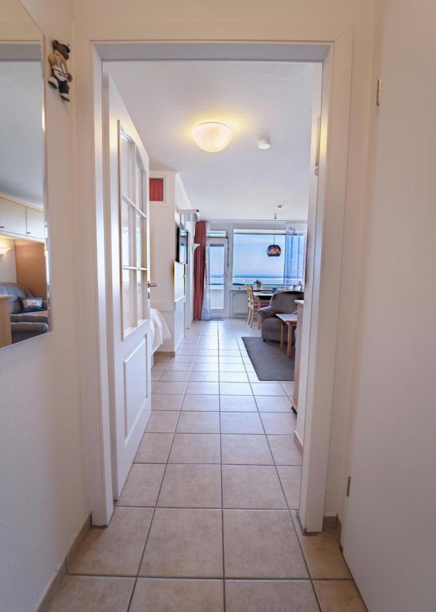 Die Appartmentwohnungen verteilen sich über 6 Etagen und sind über die Fahrstühle bequem zu erreichen. Im Erdgeschoss befinden sich verschiedene Einkaufsmöglichkeiten und ein Restaurant. Für den schnellen Einkauf finden Sie gegenüber einen kleinen Supermarkt (Achtung: in den Wintermonaten eingeschränkte Öffnungszeiten).
